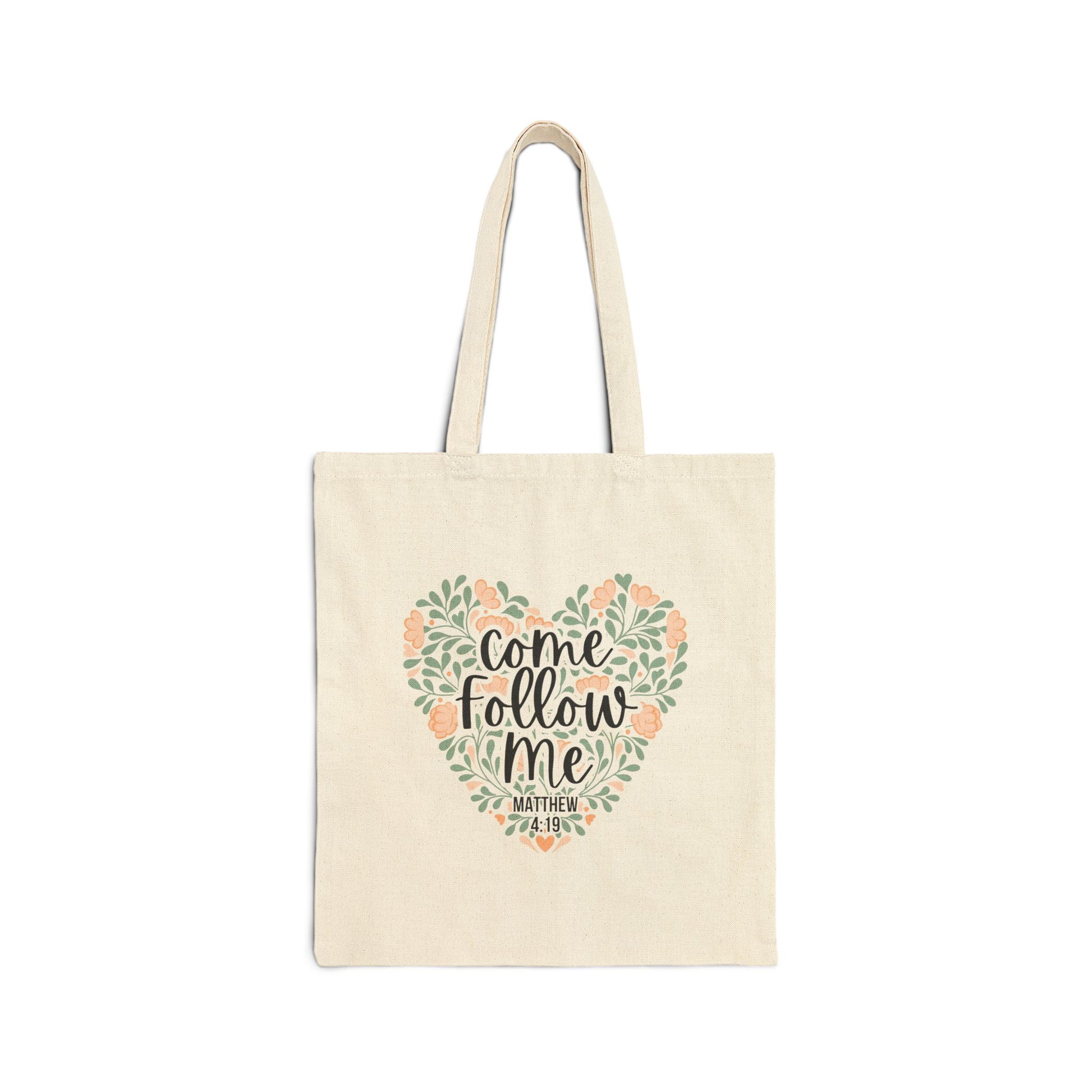 A Church Scripture Cotton Canvas Tote Bag perfect for carrying books, groceries, and everyday essentials. This tote bag exudes a peaceful and spiritual vibe, making it a great accessory for churchgoers, religious individuals, and those who appreciate inspirational quotes. Ideal for holidays, religious observances, and everyday use.
