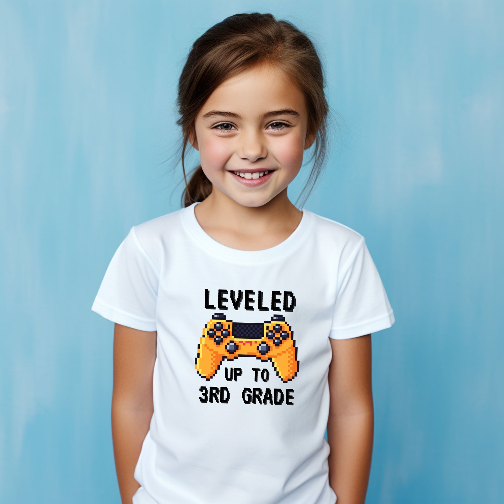 Pixelated Leveled Up To Customizable Grade Short Sleeve Youth and Adult Tee